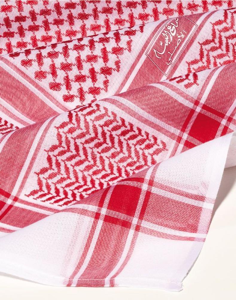 الخامة:شماغ البسام البصمة 21 ختم احمر و ابيض يتم صناعته على ايدي خبراء ومتخصصين فى صناعه الشماغ.