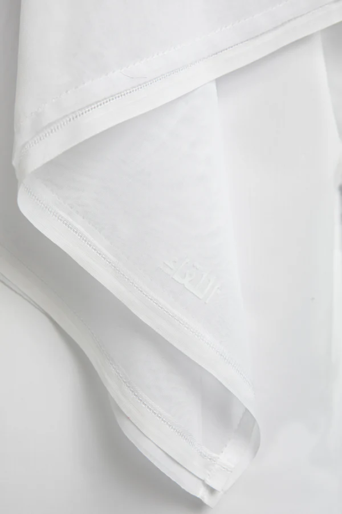 - اللون: أبيض ناصع، يعكس النقاء ويبرز الأناقة الرجولية.