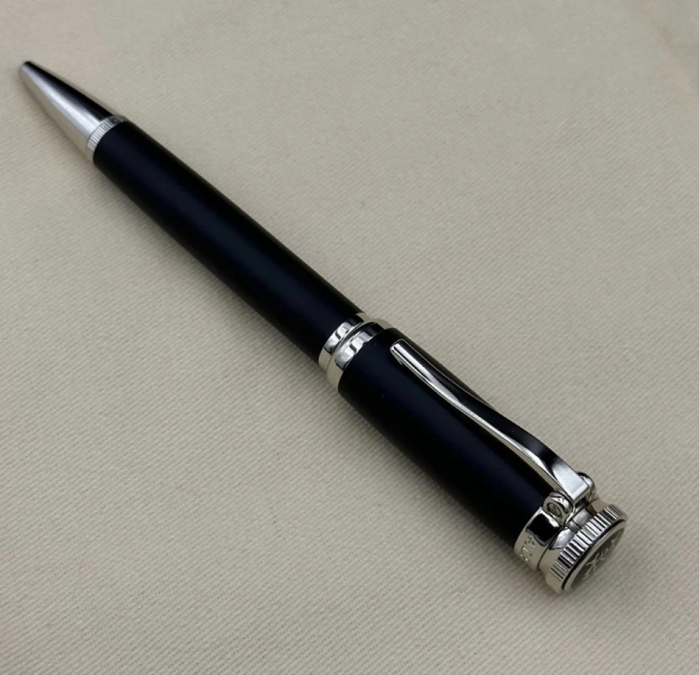 تحفة فاخرة تجمع بين جاذبية اللون الأسود ولمعان المعدن الفضي، لتعكس أناقة واحترافية لا تخطئها العين. صُنِع القلم بأعلى معايير الجودة، ليناسب الشخصيات الراقية التي تهتم بأدق التفاصيل. كتابة سلسة، تصميم متوازن، ولمسة تكمّل إطلالتك اليومية بكل فخامة.