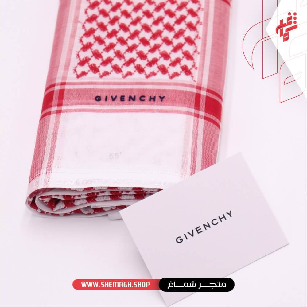 - الشعار (Givenchy) مطبوع بدقة على أحد أطراف الشماغ، مما يبرز العلامة التجارية.