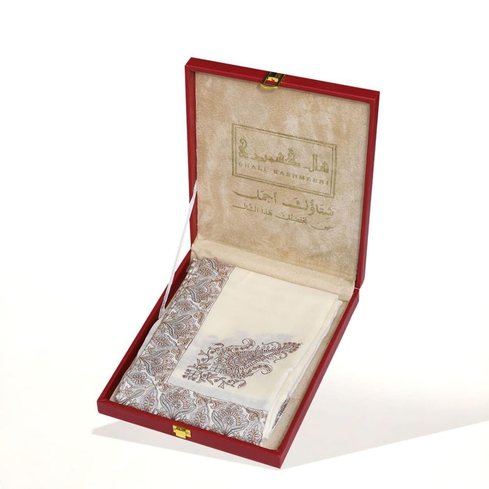- هدية فاخرة في علبة جلدية: يأتي الشال في علبة هدية جلدية فاخرة باللون الأحمر الملكي، مزينة بختم ذهبي. إنه الخيار الأمثل لمن يبحث عن أفخم هدية رجالية جاهزة في موسم الشتاء.