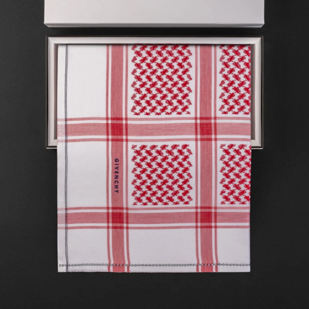 - حماية النسيج الفاخر: للحفاظ على رونق القماش وشكله الأصلي، تجنب تعريض شماغ جيفنشي مباشرة للعطور المركزة أو أي مواد كيميائية قوية.