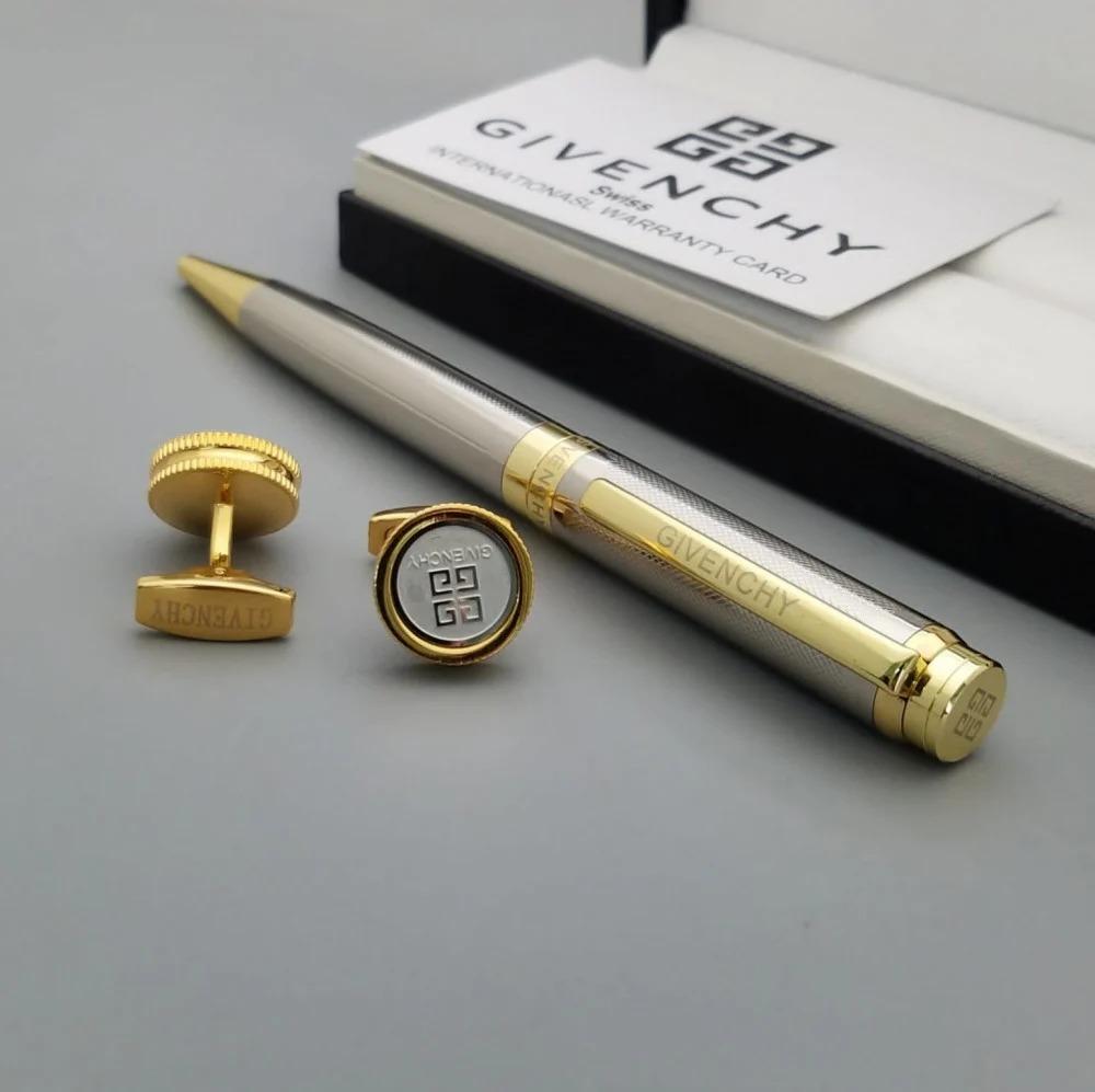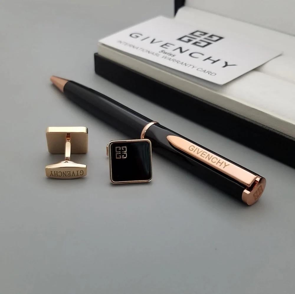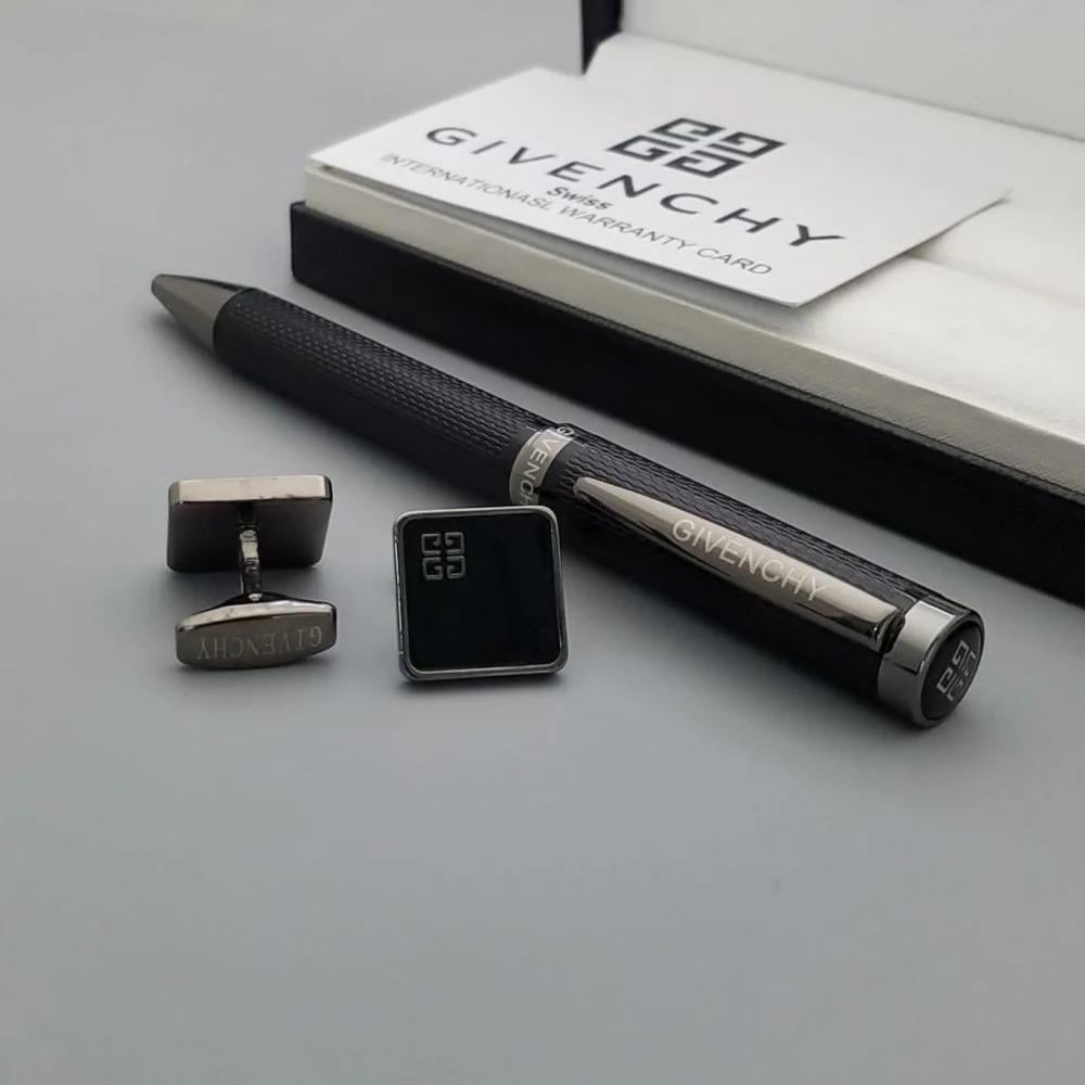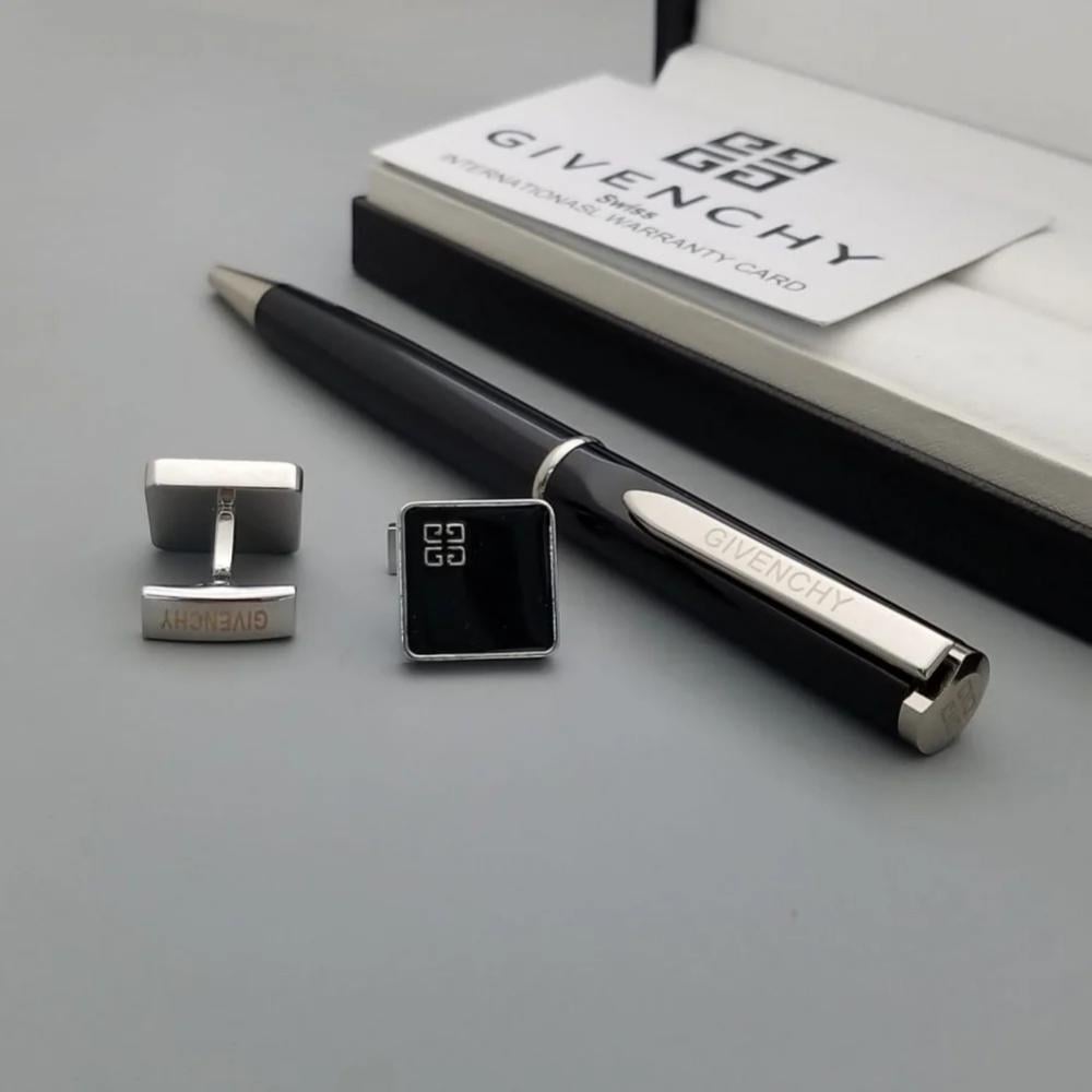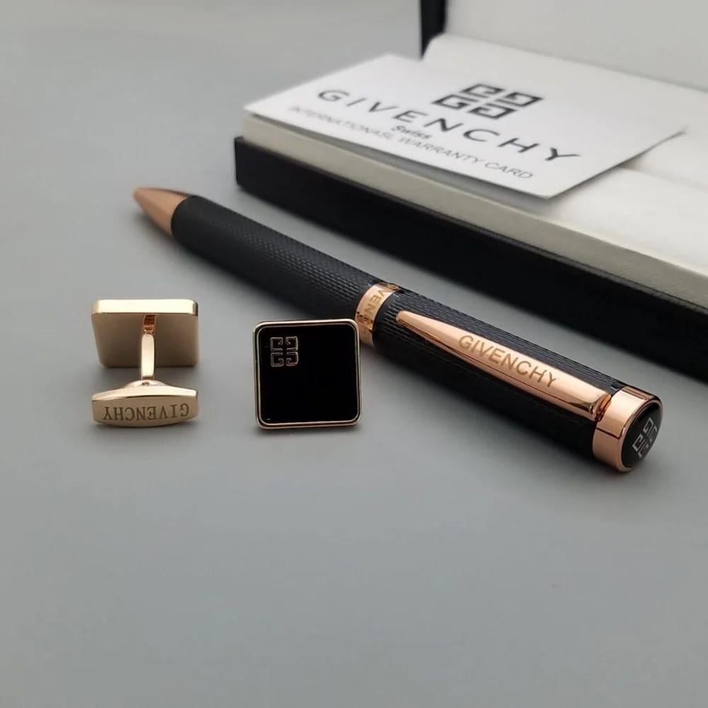 - طقم أنيق من ماركة Givenchy ، يشمل قلم معدني وكبك رجالي.