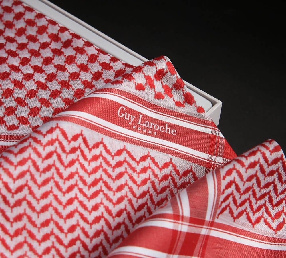 - شماغ جاي لاروش أحمر GH-R مزيج بين الالوان الاحمر والابيض لا يتأثر بالغسيل المتكرر فهو مصبوغ بطريقة احترافية تجعل الصبغه ثابتة ع مدار سنوات طويلة ولا يبهت لونه .
