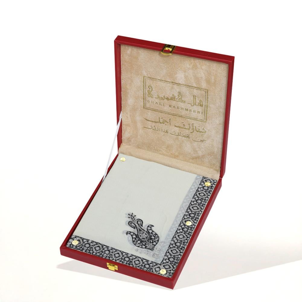 شال كشميري عاجي مطرز اسود يمنحك إطلالة راقية وفخمةبلونه العاجي وتطريزه الأسود الغني. تصميم أنيق مصنوع من صوف الكشمير ليمنحك دفء فائق وملمس ناعم لا يُضاهى، مثالي لفصل الشتاء والمناسبات الفاخرة.