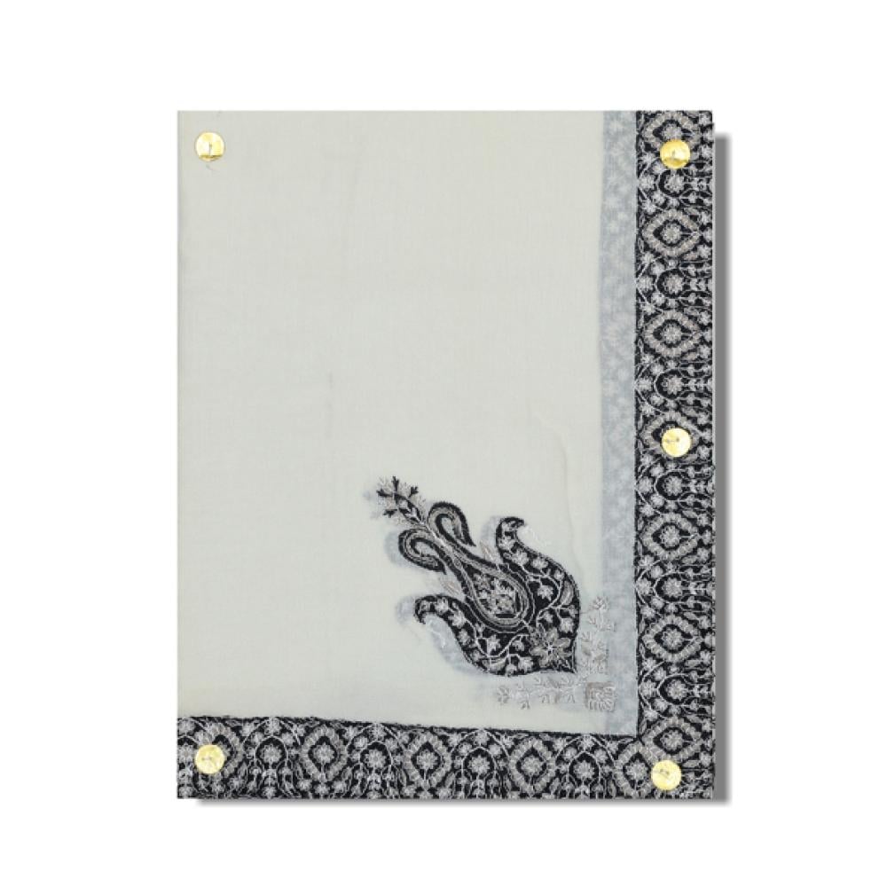 شال كشميري عاجي مطرز اسود