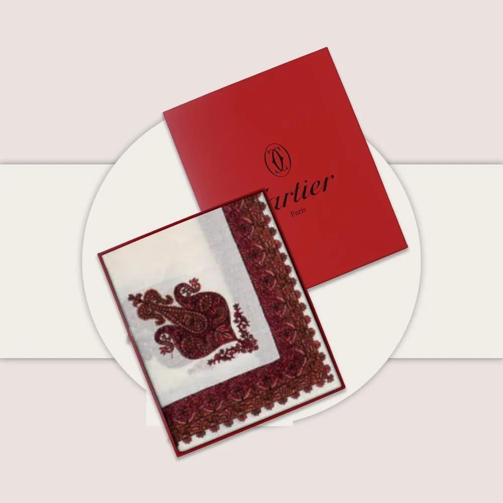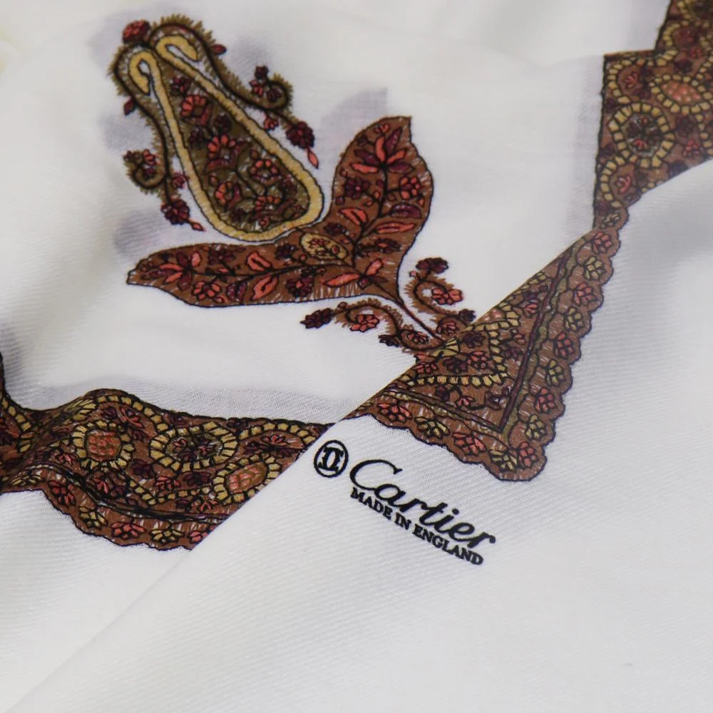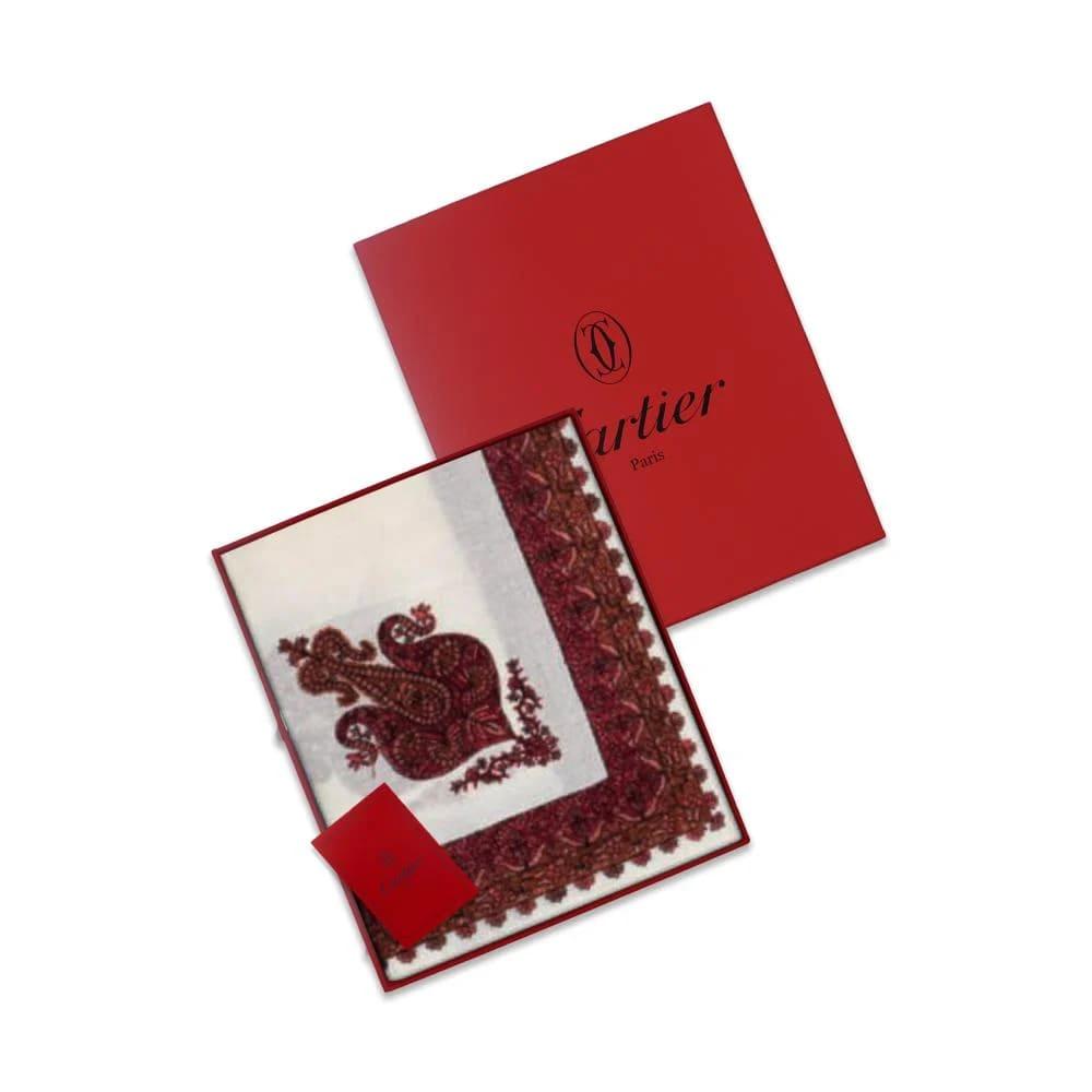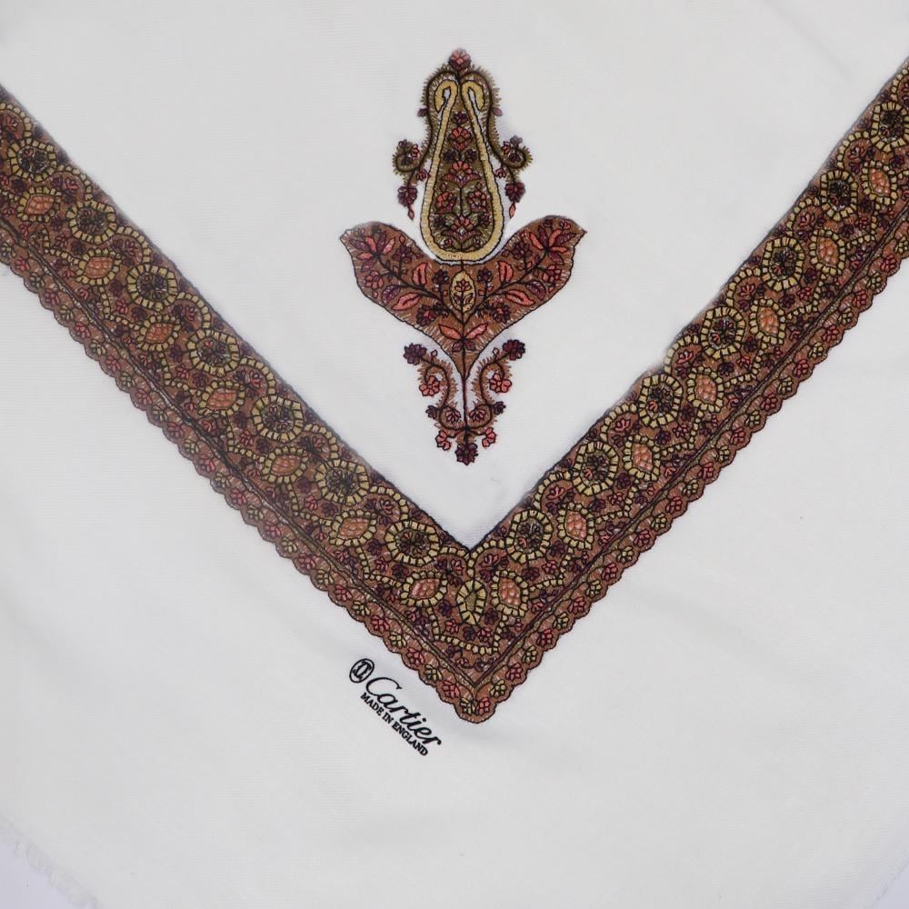 شال كشمري كارتير كريمي تطريز بني بتطريز فريد يجمع بين الألوان البنية، مما يضفي لمسة فنية راقية وأنيقة على الشال. مصنوع من أجود أنواع صوف الكشمير ليمنحك الدفء والراحة المثالية في فصل الشتاء مع ملمس ناعم وخفيف.