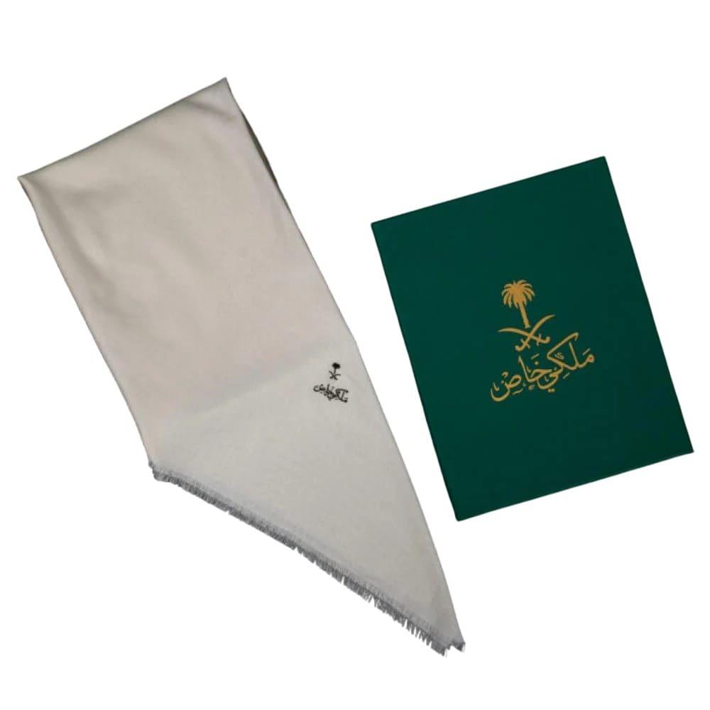 تصميم الشعار: يحمل الشال تطريزاً دقيقاً وبسيطاً لشعار الماركة "ملكي خاص" في زاوية الشال ، مع الحفاظ على الأغلبية العظمى من الشال سادة .