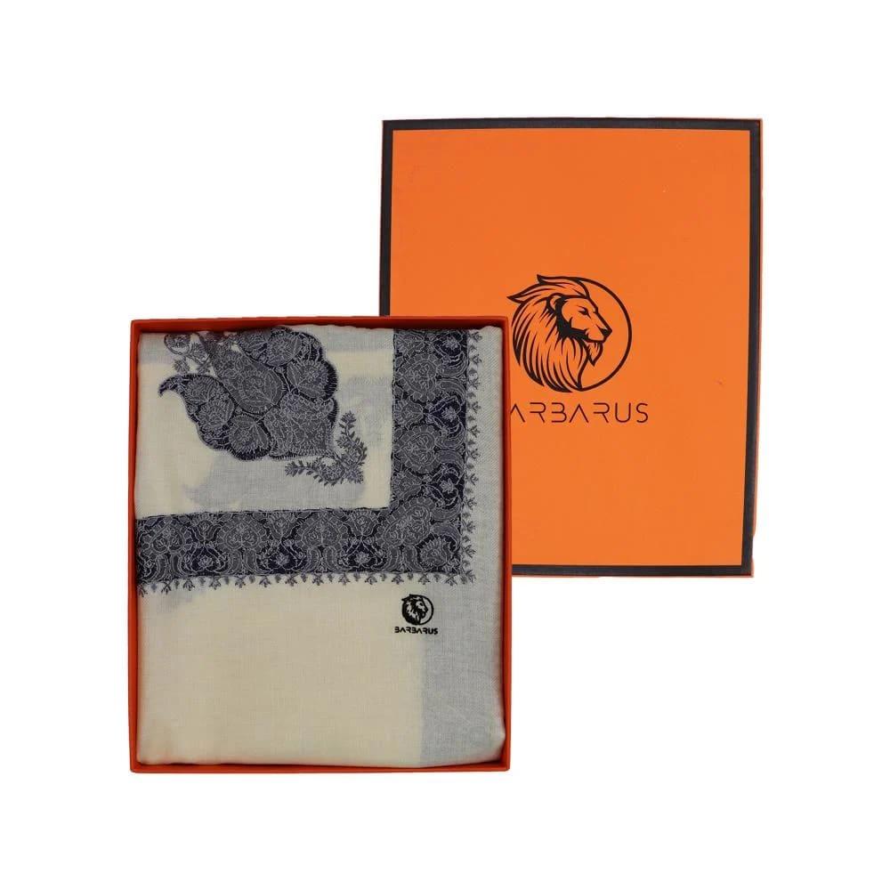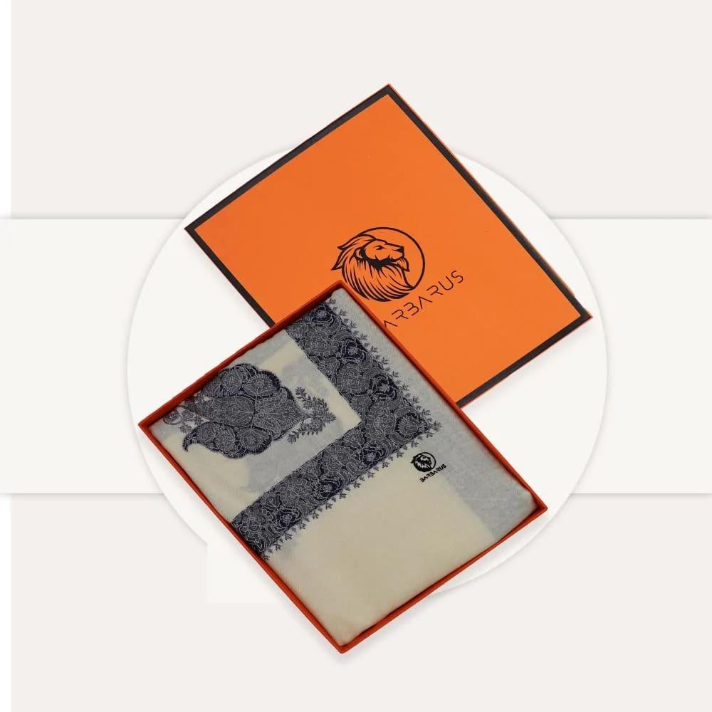 شال كشميري بيج تطريز فضي و كحلي ماركة بربروس هو خيارك الأمثل لتجسيد الفخامة والأناقة في فصل الشتاء. مصنوع من أجود أنواع الصوف الكشميري الناعم، يتميز الشال بتطريز يدوي دقيق يضفي لمسة فنية راقية، مما يجعله قطعة مميزة تضيف دفء وأسلوب كلاسيكي إلى إطلالتك.