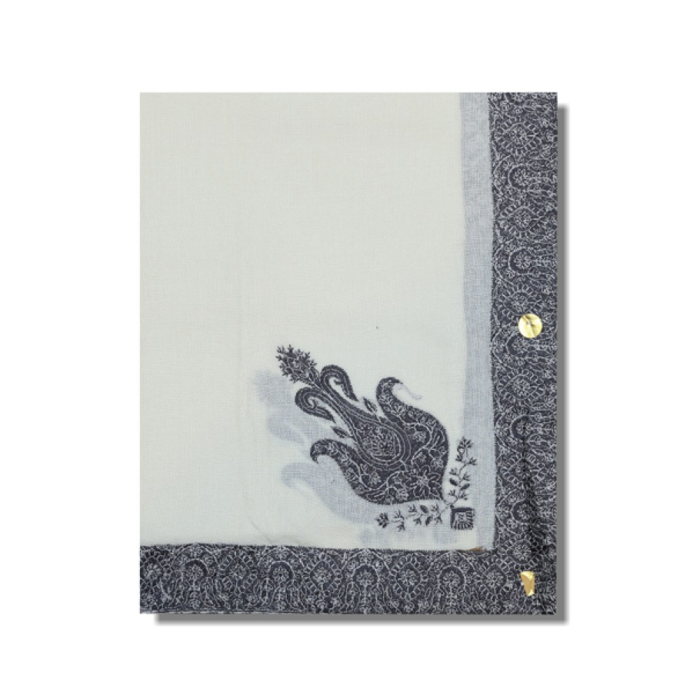 شال كشميري بتطريز رمادي داكن يجمع بين الفخامة والدفء. مصنوع من أفضل أنواع الصوف ليوفر لك راحة لا مثيل لها. تصميمه الأنيق يناسب جميع المناسبات ويوفر لك مظهراً مميزاً.