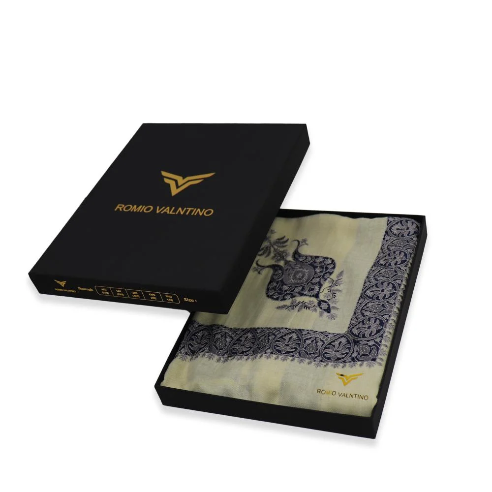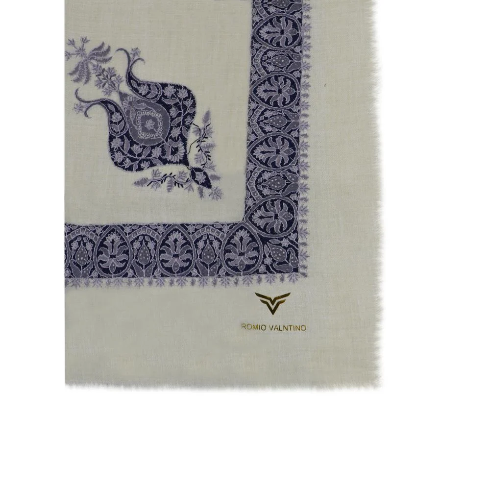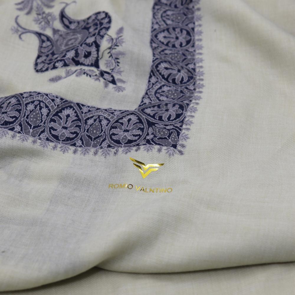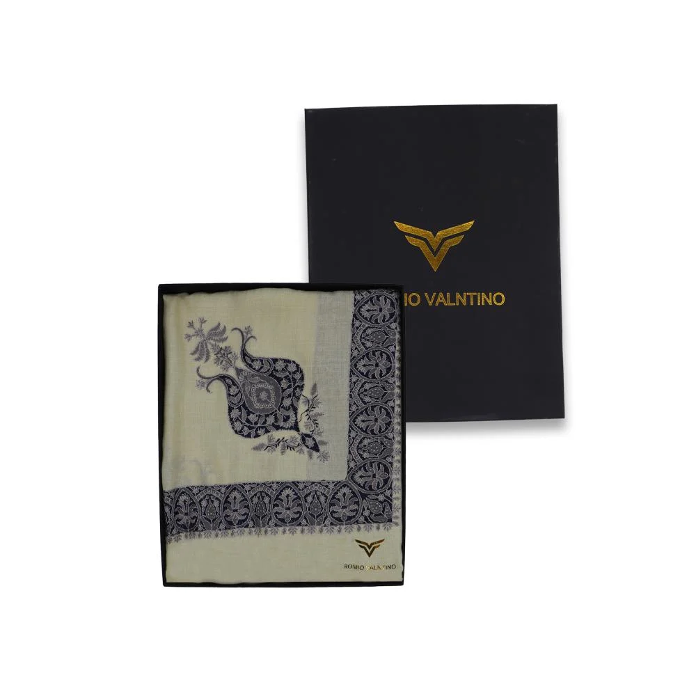 شال كشميري ماركة روميو فلنتينو بيج فاتح مطرز فضي و كحلي