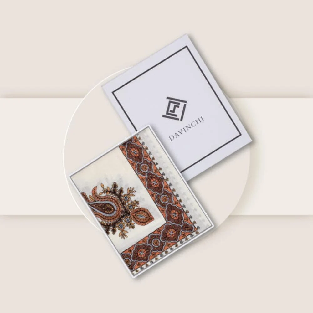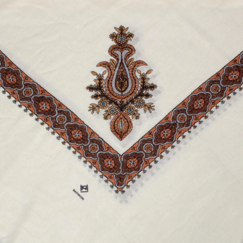 شال كشميري ابيض تطريز عودي وبني فاتح ماركة دافنشي هو تعبير واضح عن الفخامة والرقي في عالم الشالات الشتوية. مصنوع من صوف كشميري عالي الجودة، يوفر لك دفء فائق وراحة دائمة. التصميم المطرز بدقة عالية يعكس التراث الكشميري الأصيل، مما يجعل هذا الشال قطعة لا غنى عنها في موسم الشتاء.