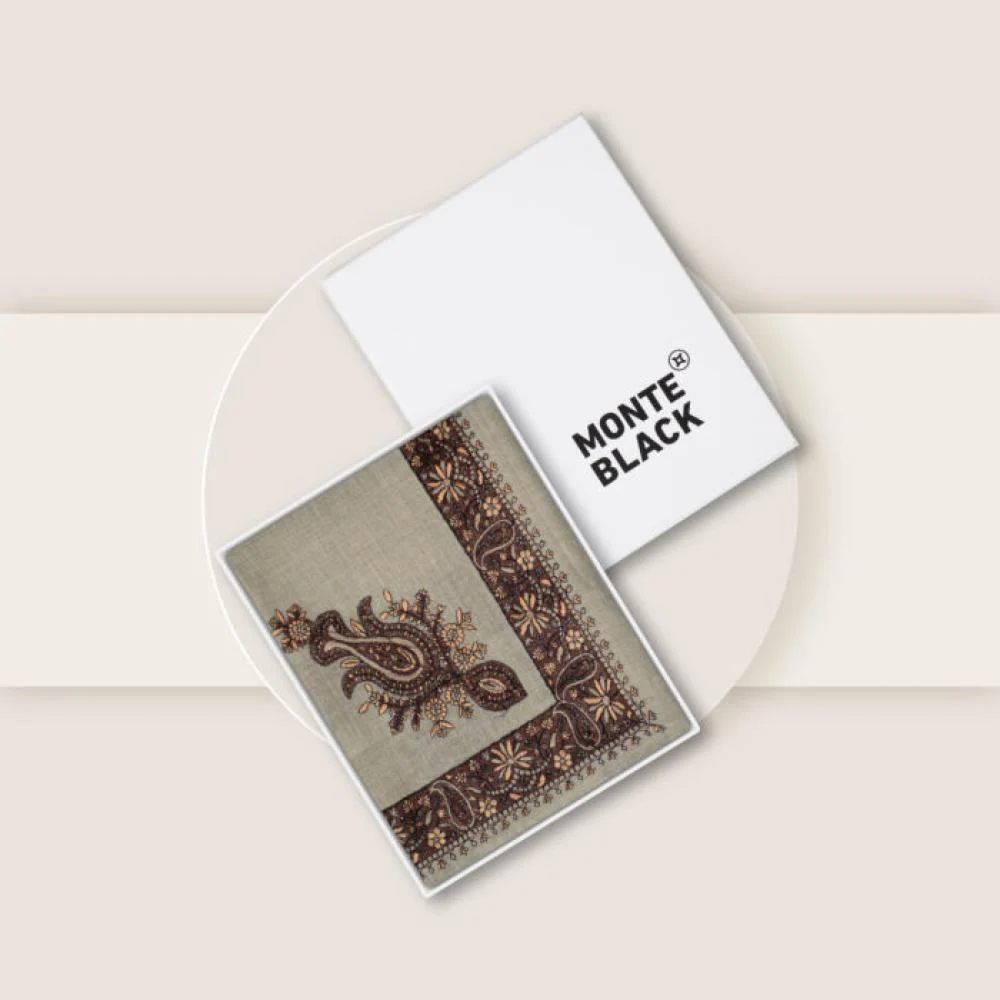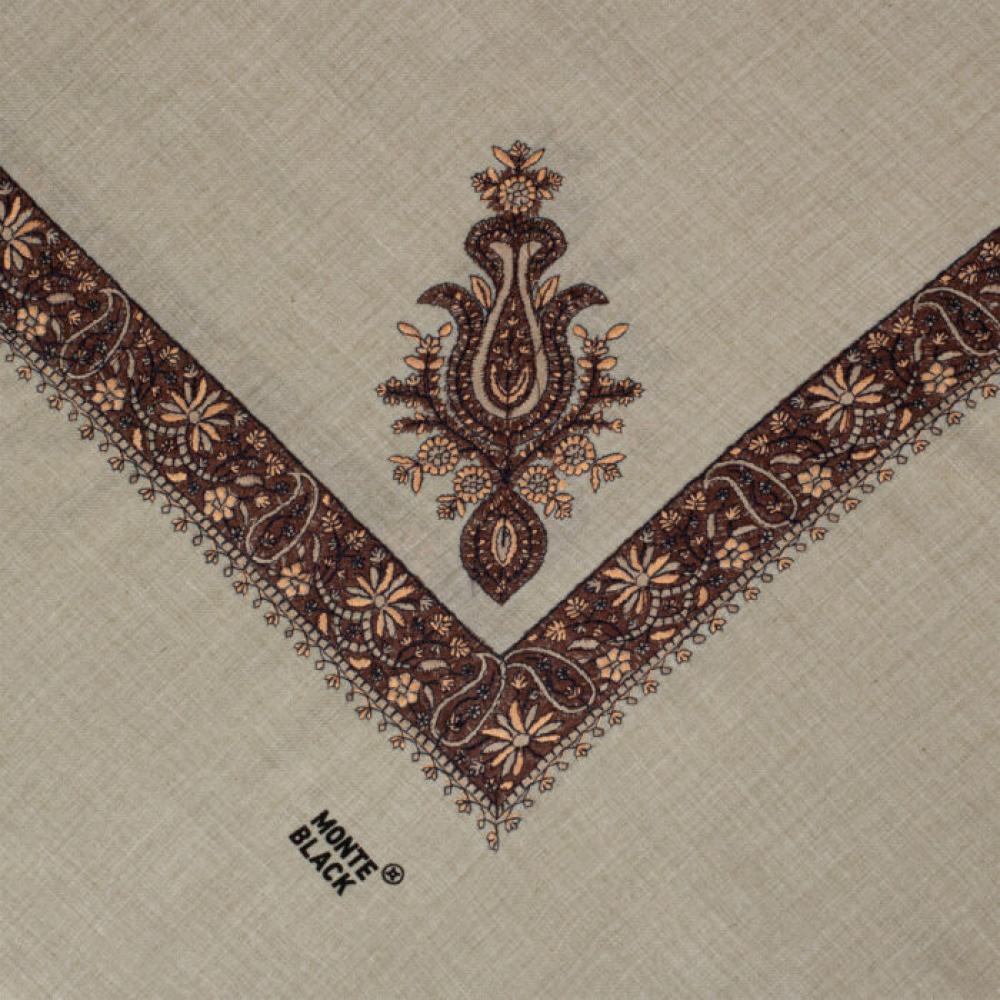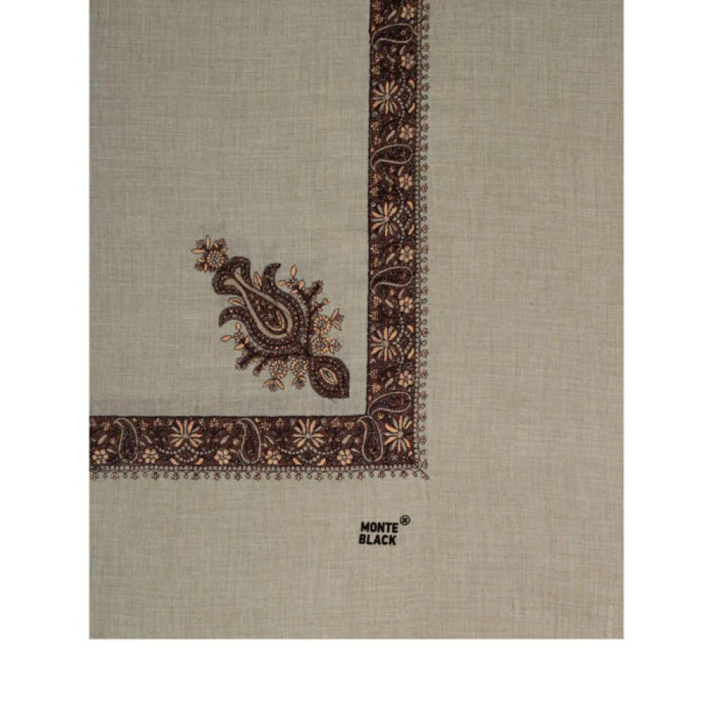 أضف لمسة من الفخامة التقليدية إلى إطلالتك مع شال كشميري ماركة مونتي بلاك لون بيج مطرز بني تصميم يجمع بين الدفء والجاذبية، مطرّز يدويًا بنقوش مستوحاة من التراث الكشميري الأصيل بألوان متناغمة تجمع بين البرتقالي والنحاسي والرمادي الفاتح.