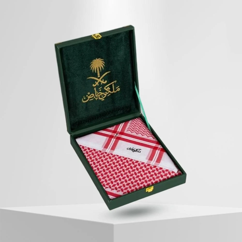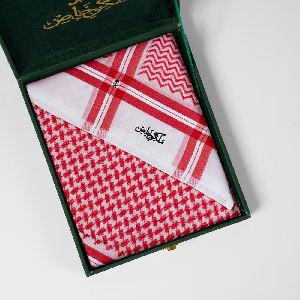 - الخامة: شماغ ملكي خاص مصنوع من قطن متين وعالي الجودة يضمن راحة وملمس مميز.