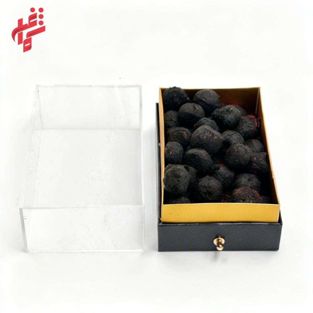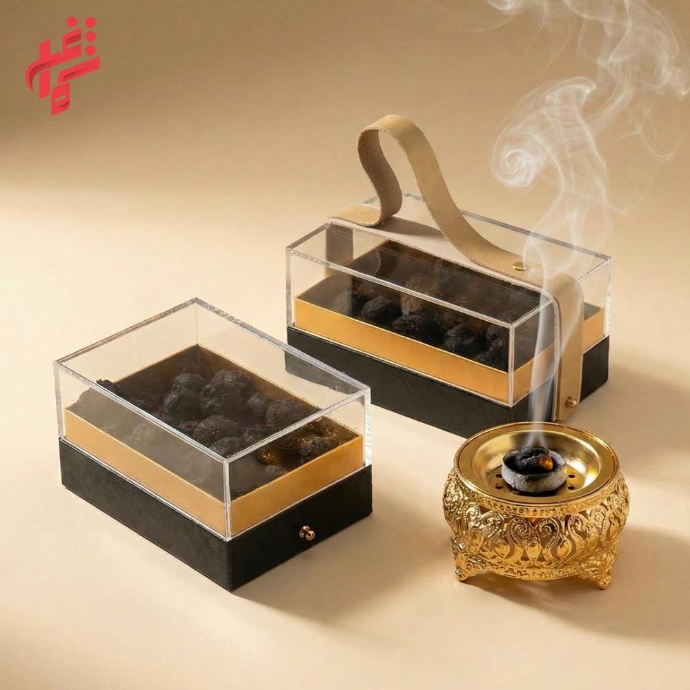 - الشفافية والفخامة: العلبة الأكريليك تظهر تفاصيل حبات المعمول والزعفران، مما يجعلها إضافة أنيقة لطاولة الضيافة.