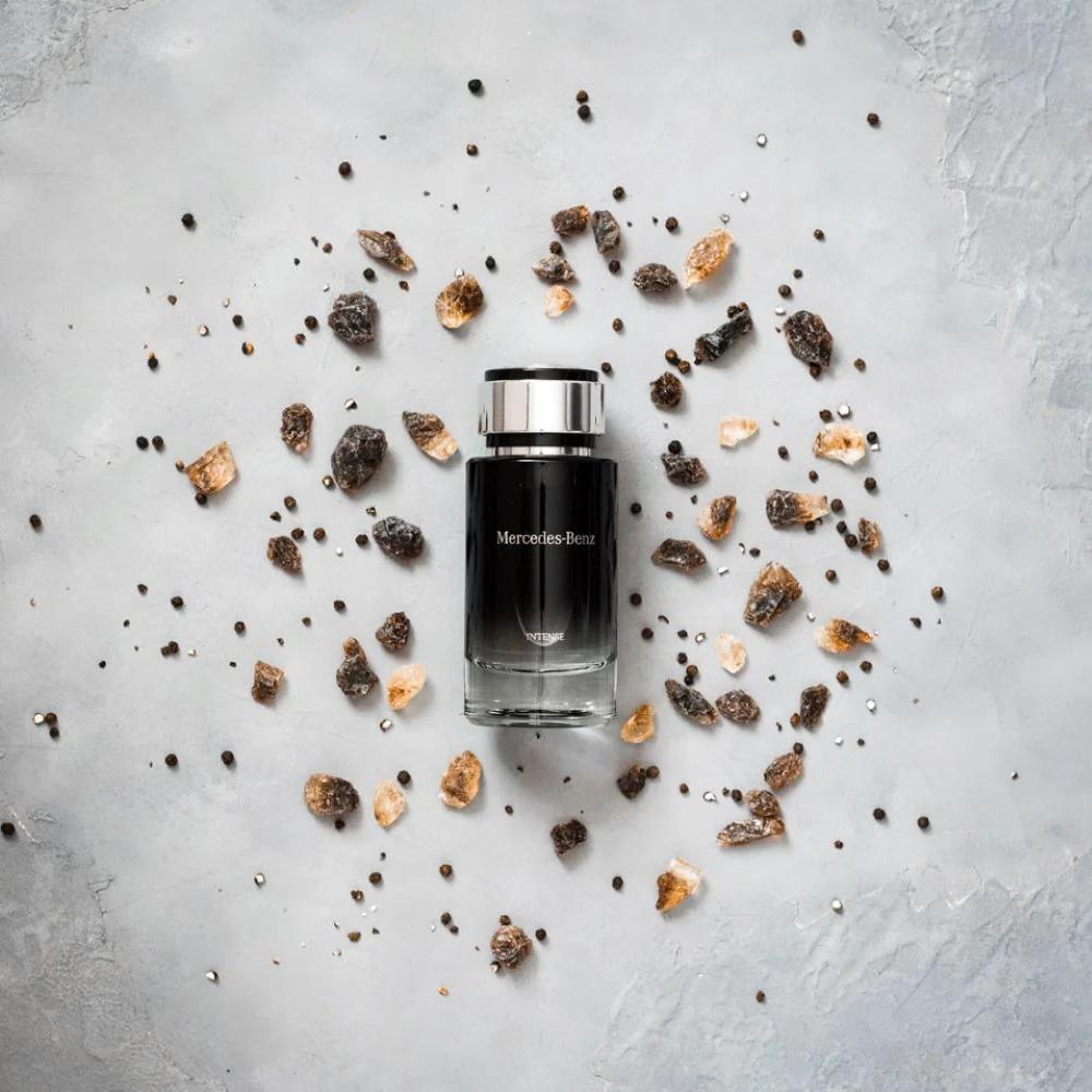 - عطر مرسيدس بنز انتنس الرجالي او دو تواليت 120مل : يتميز برائحة متطورة ذات انتشار عميق ، ما يؤكد هوية الرجل ويبرز تفرده , عطر يتحدى ويتخطى حدود القوة والجاذبية .