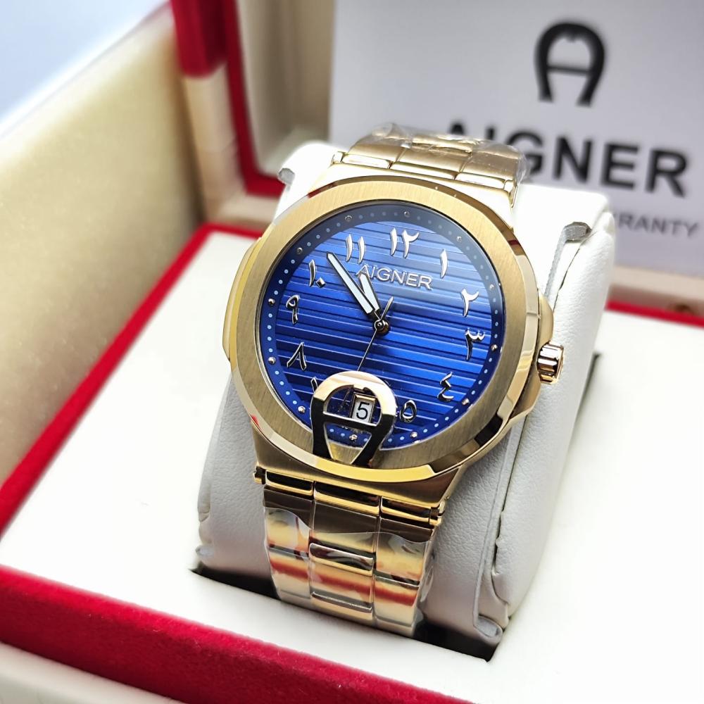 - ساعة معدنية أنيقة مع سوار من الفولاذ المقاوم للصدأ أو الذهب، مما يضفي لمسة فاخرة على مظهرك.