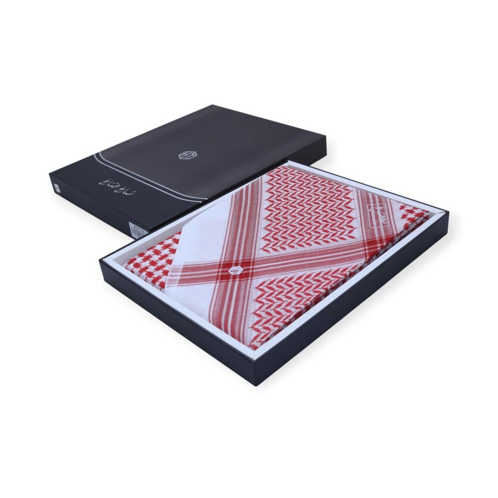 - العلبة: يأتي الشماغ في علبة فاخرة مثالية للإهداء.