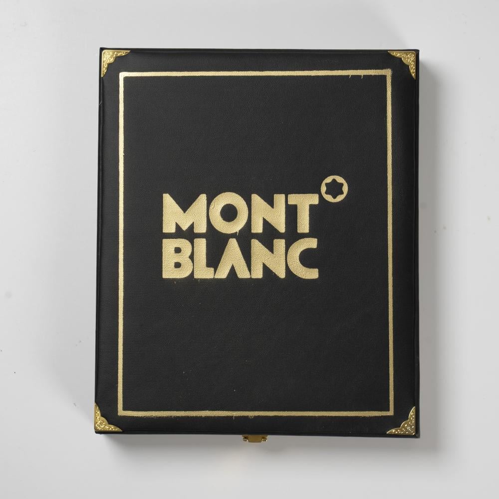 - العلبة: علبة جلد فاخرة باللون الأسود مع شعار Mont Blanc باللون الذهبي