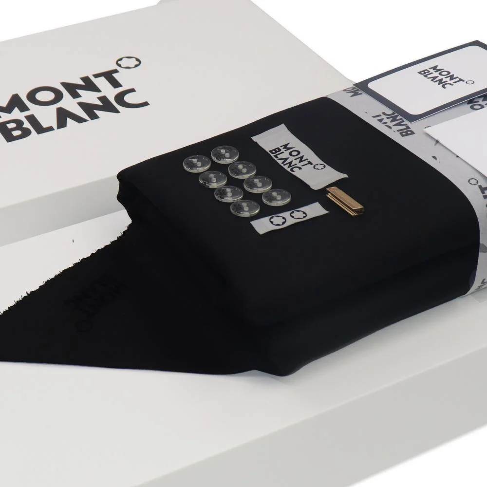 قماش شتوي أسود فاخر من ماركة مونت بلانك، يجمع بين الأناقة الكلاسيكية والخامة العالية الجودة. تصميمه الأنيق واللون الأسود العميق يمنحك إطلالة متكاملة وفخمة تناسب جميع المناسبات الشتوية الرسمية.