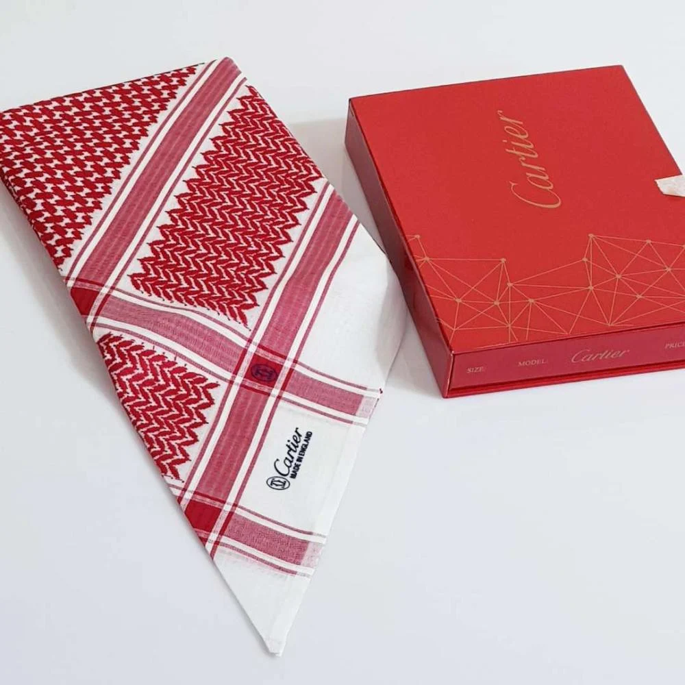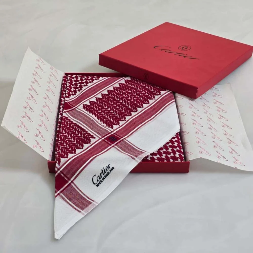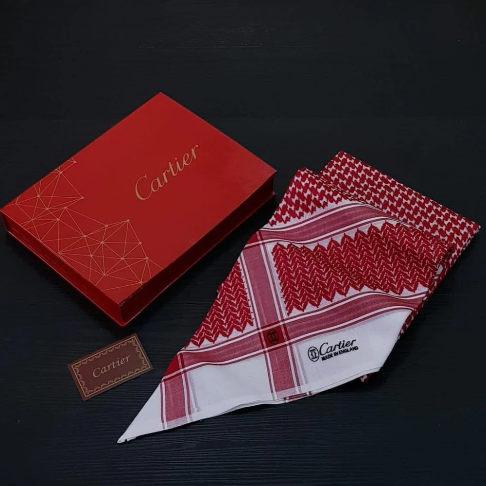 - يحمل توقيع كارتير الفاخر في النقوش، مع لمسات أنيقة تبرز جمال الشماغ .
