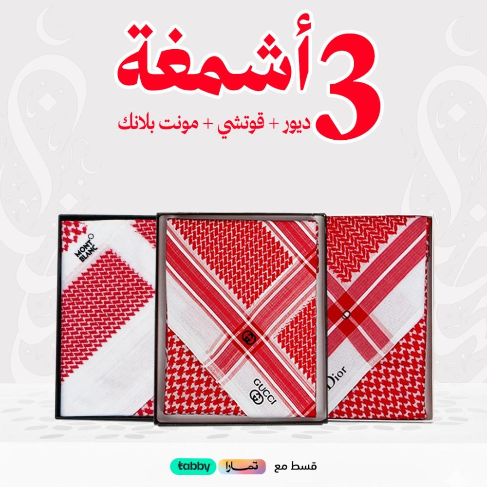 هذا العرض يجمع لك ثلاث شماغات مميزة من أشهر الماركات العالمية، بتصاميم مختلفة وجودة عالية، لتظهر بأناقة لا تُضاهى في كل مناسبة.
