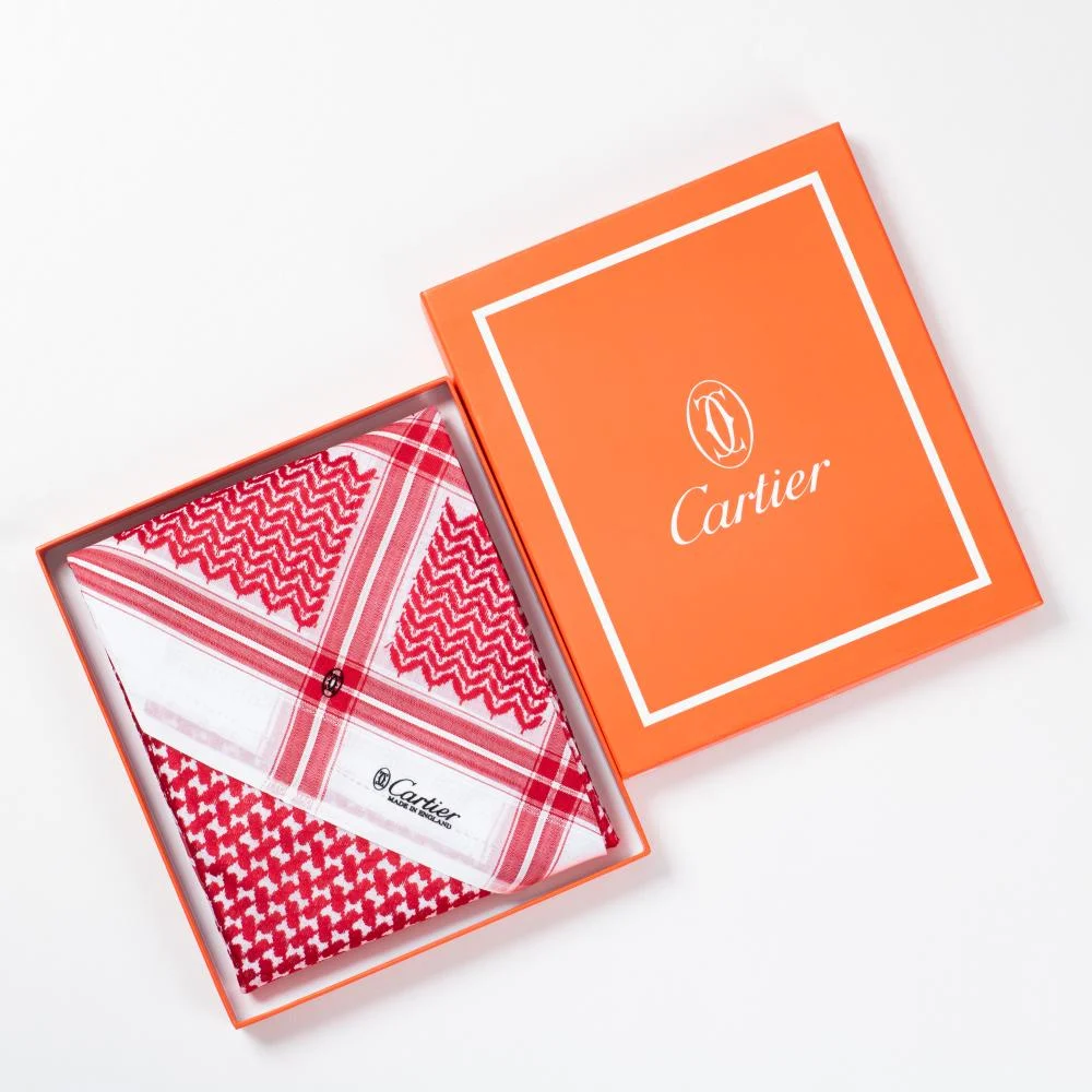 - شماغ كارتير بريميوم ييجمع بين الفخامة والأناقة الراقية، مع تطريز شعار كارتير الشهير الذي يعكس جودة عالية واهتمامًا فائقًا بالتفاصيل. مصنوع من خامات فاخرة توفر راحة ومتانة تدوم، ليكون الخيار الأمثل لك