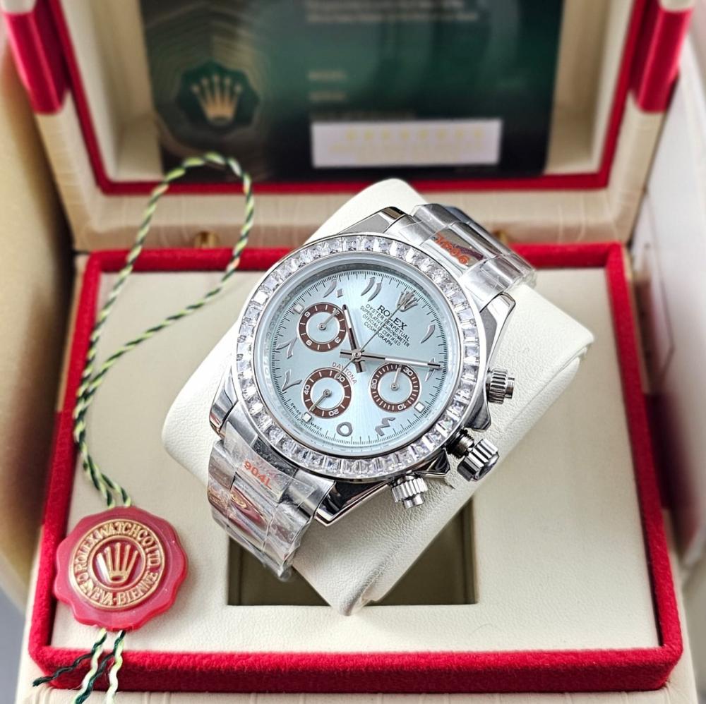 ساعة رولكس درجة أولى تأتي بالتفاصيل الدقيقة والتصميم الرائع الذي يميز ساعات رولكس الأصلية. إنها تستخدم مواد عالية الجودة وتتميز بالدقة والمتانة. بفضل التصميم الذكي والتفاصيل الراقية، لن يتعرف عليها أحد سوى الخبراء.