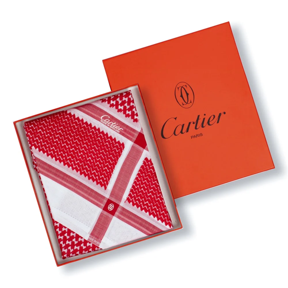 - علبة فاخرة بطابع كارتير المميز، مثالية للإهداء أو للحفاظ على أناقة شماغك.