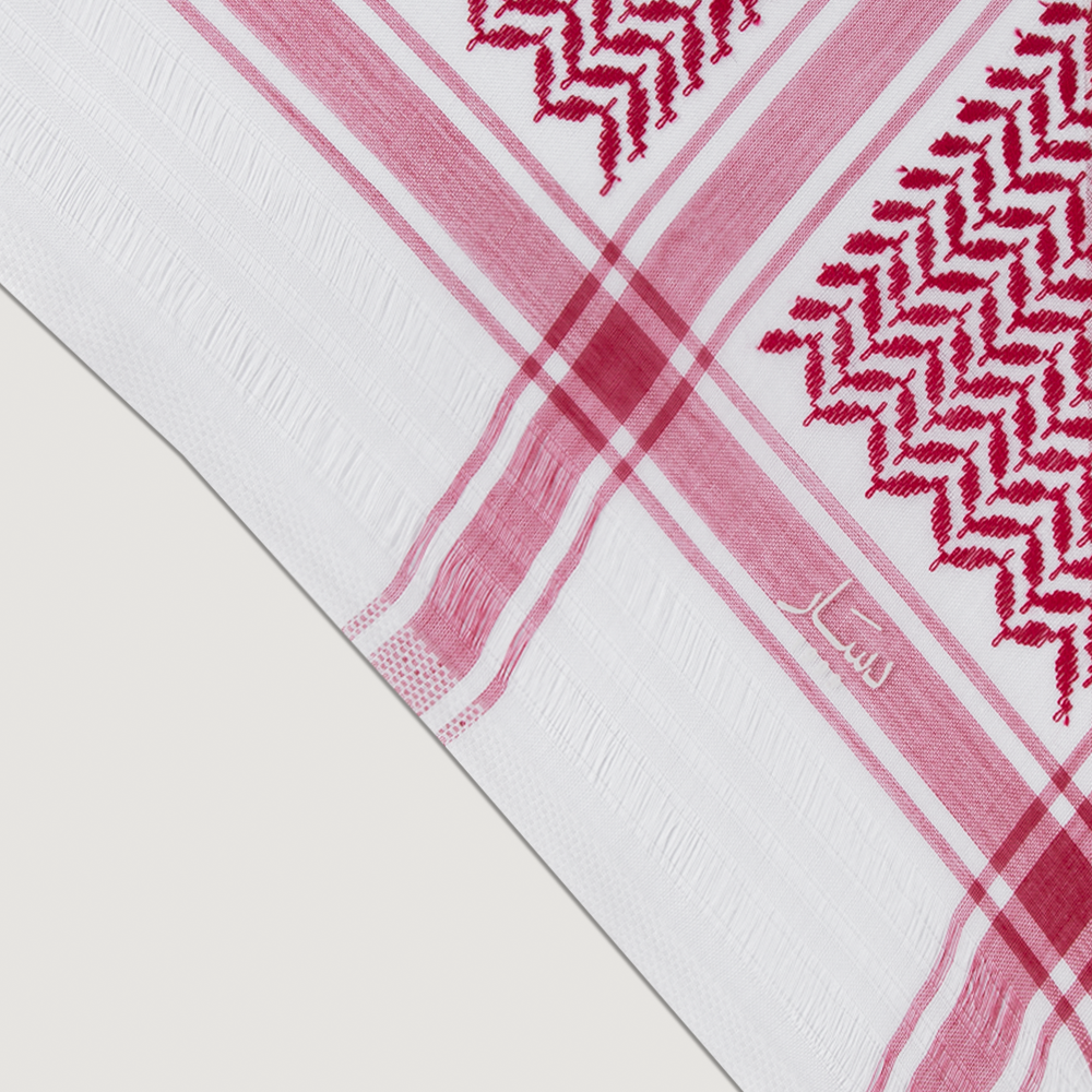هو شماغ مميز يجمع بين التراث العربي الأصيل والتصميم العصري، مما يضفي عليك إطلالة أنيقة ومميزة في مختلف المناسبات باللون الاحمر المميز مما يضفي عليه جاذبية خاصة ويعكس التراث العربي الأصيل .
