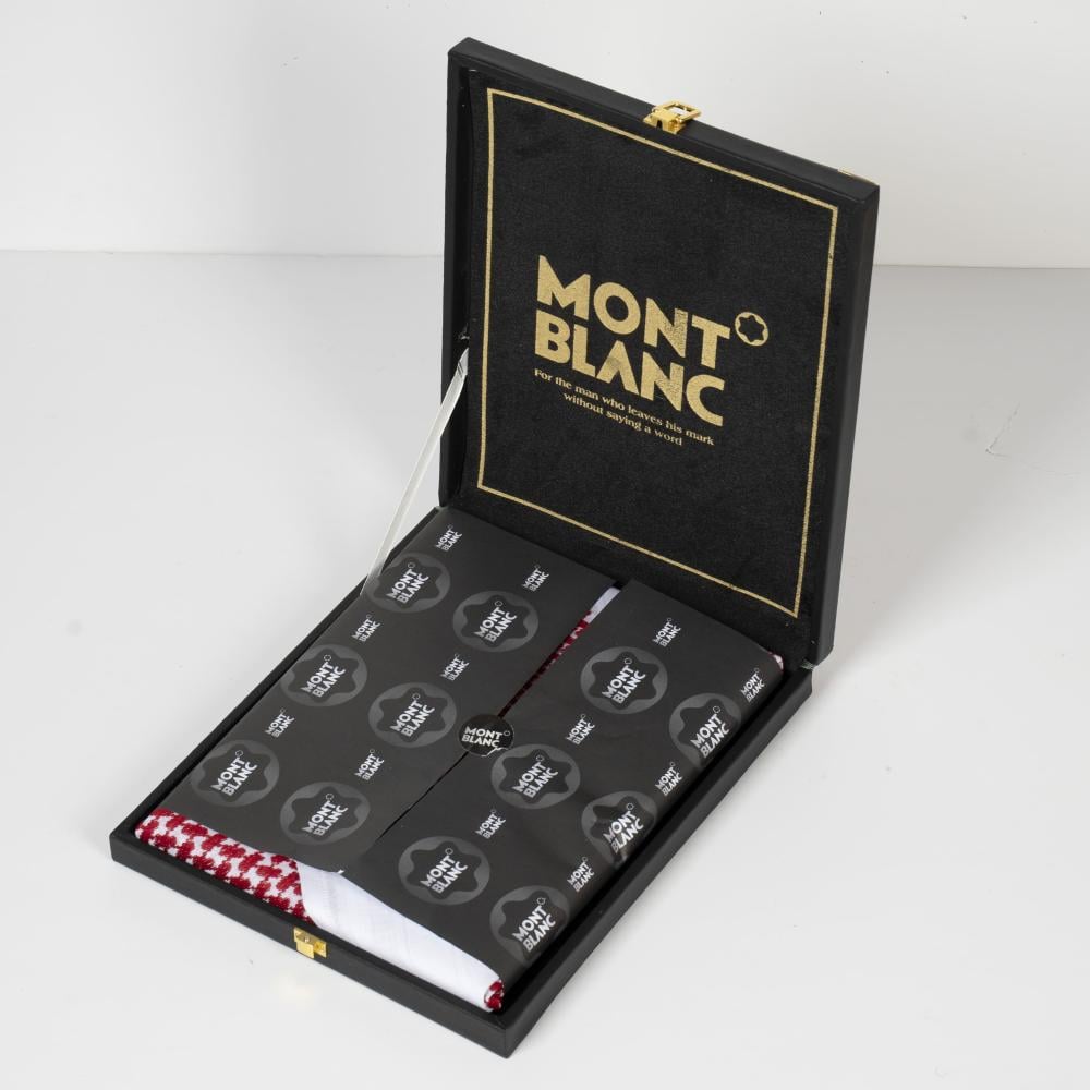 نعم، يأتي شماغ احمر مونت بلانك داخل علبة فاخرة تحمل شعار Mont Blanc.