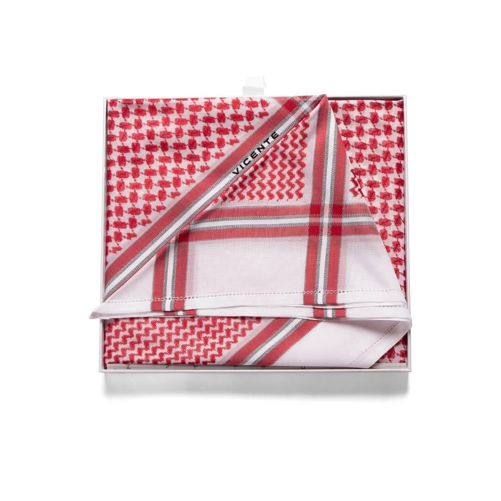 - مصنوع شماغ فيسنتي من خامات عالية الجودة مثل القطن .