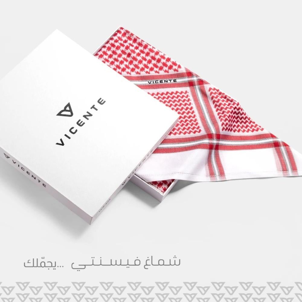 - شماغ فيسنتي هو خيار راقٍ ومميز في عالم الأزياء الرجالية، حيث يجمع بين الأناقة الفائقة والجودة العالية حيث يتمتع هذا الشماغ بتصميم عصري وأنيق يتناسب مع الذوق الخليجي التقليدي .