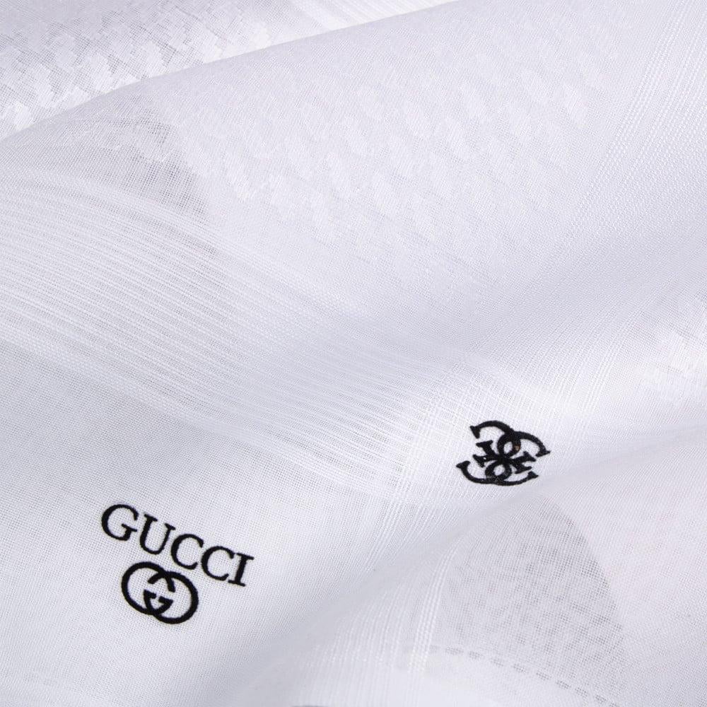 - شماغ قوتشي ابيض انجليزي يجمع بين الأناقة الكلاسيكية لماركة Gucci مع لمسة من التميز التي تجعل من الشماغ خيارًا مثاليًا .فهو رمز للفخامة والجودة العالية، حيث يجمع بين التراث العربي العريق والتصميم الإيطالي الراقي.