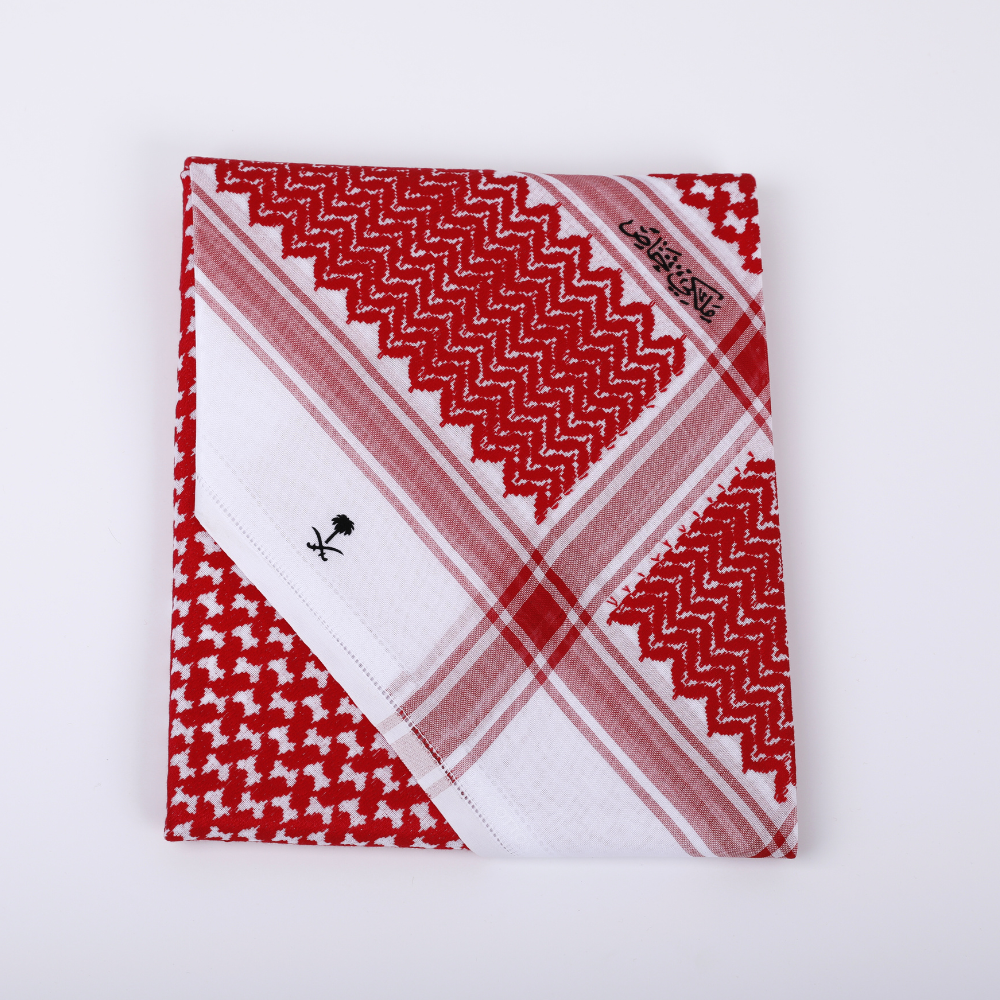 - الخامة: شماغ ملكي خاص من قطن عالي الجودة يتميز بالنعومة والراحة.