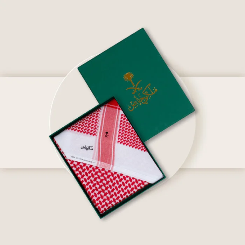 - شماغ فاخر بتصميم عصري يحمل طابع التراث والهوية الوطنية.