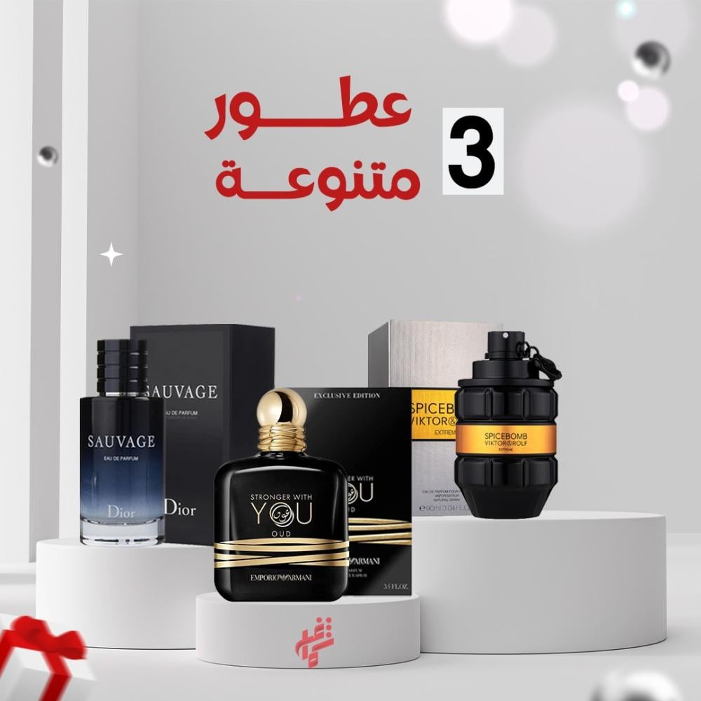 نقدم لكم مجموعه من أفضل العطور الرجالية المتميزه ضمن مجموعة منتجات متجرنا عرض من اقوي مجموعه عطور للرجال صيفيه الأن بسعر يناسبك و جوده عاليه ، مجموعة عطور رجالية شرقية يتكون العرض من عطر يو عود المتميز برائحته وثباته القوي - عطر سوفاج بتركيز عالي و جوده متميزه - عطر سبايس بومب بمزيج قوي من الأعشاب الخشبيه الفريدة .