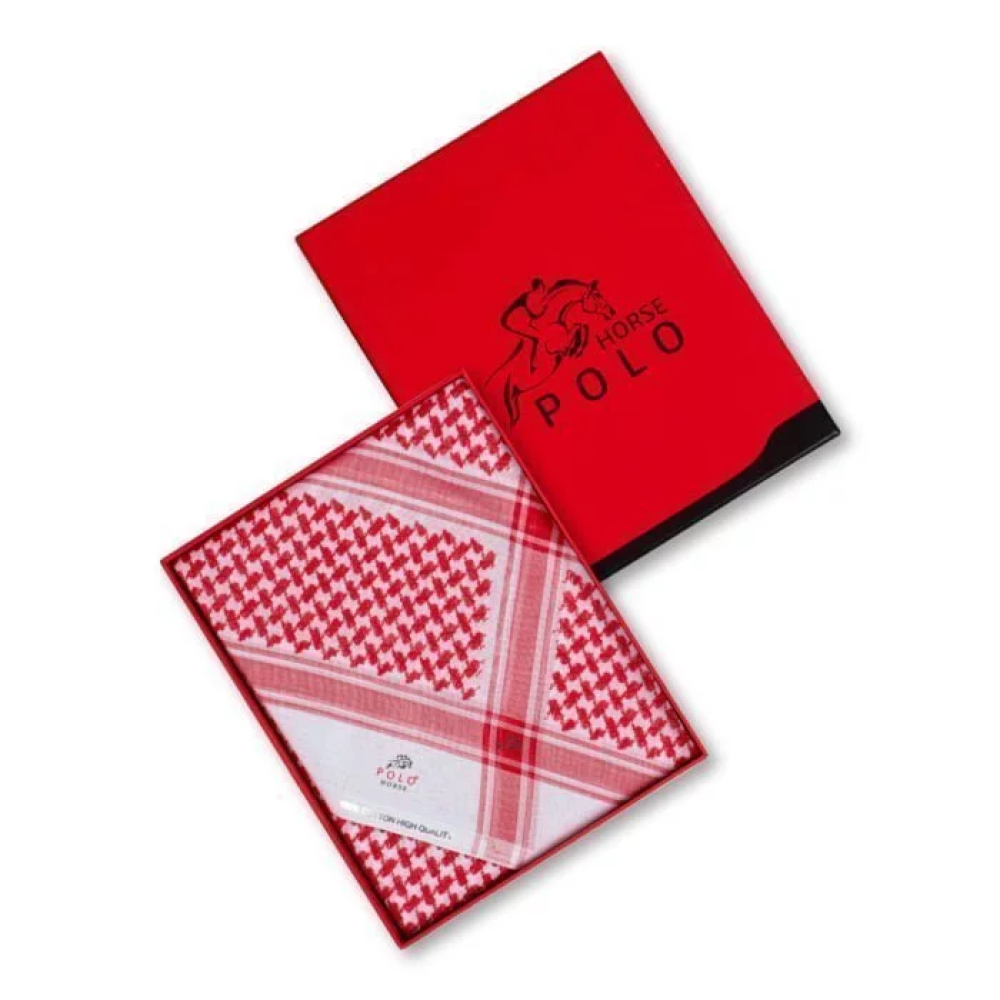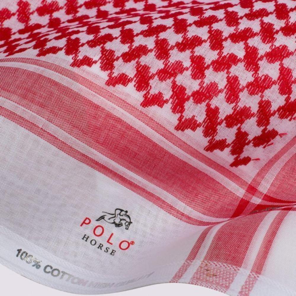 شماغ بولو يتم صنعه من خامات عالية الجودة وشماغ قطني طبيعي 100%.