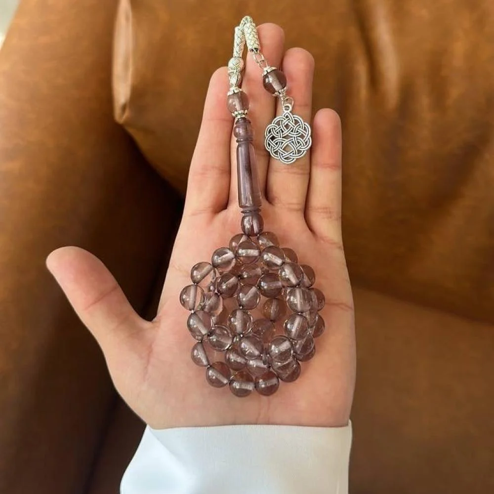- سبحة بكلايت شفافة بلون بني أنيق يضفي لمسة فاخرة وعصرية.