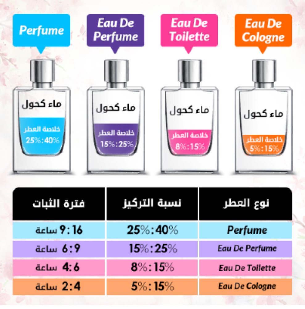 - عطر عالي الثبات مكون من مجموعه من المكونات الطبيعيه التى تدوم لفتره طويله .